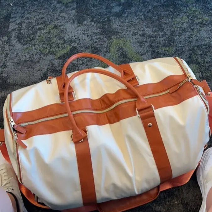 Depende de cómo empacas, tiene capacidad para llevar ropa más de 15 días 📆, incluyendo zapatos, accesorios y neceser. Está pensada para optimizar el espacio sin sacrificar outfits 💃✨